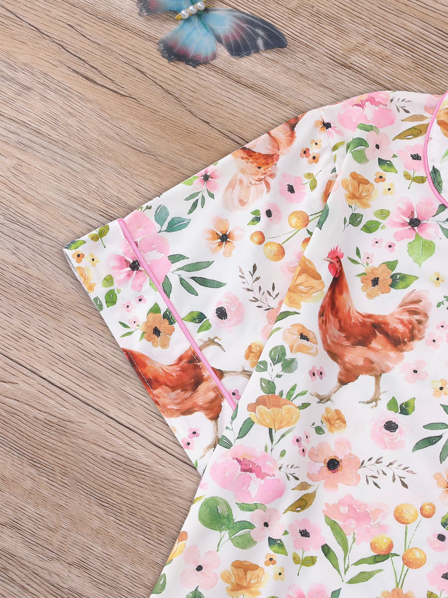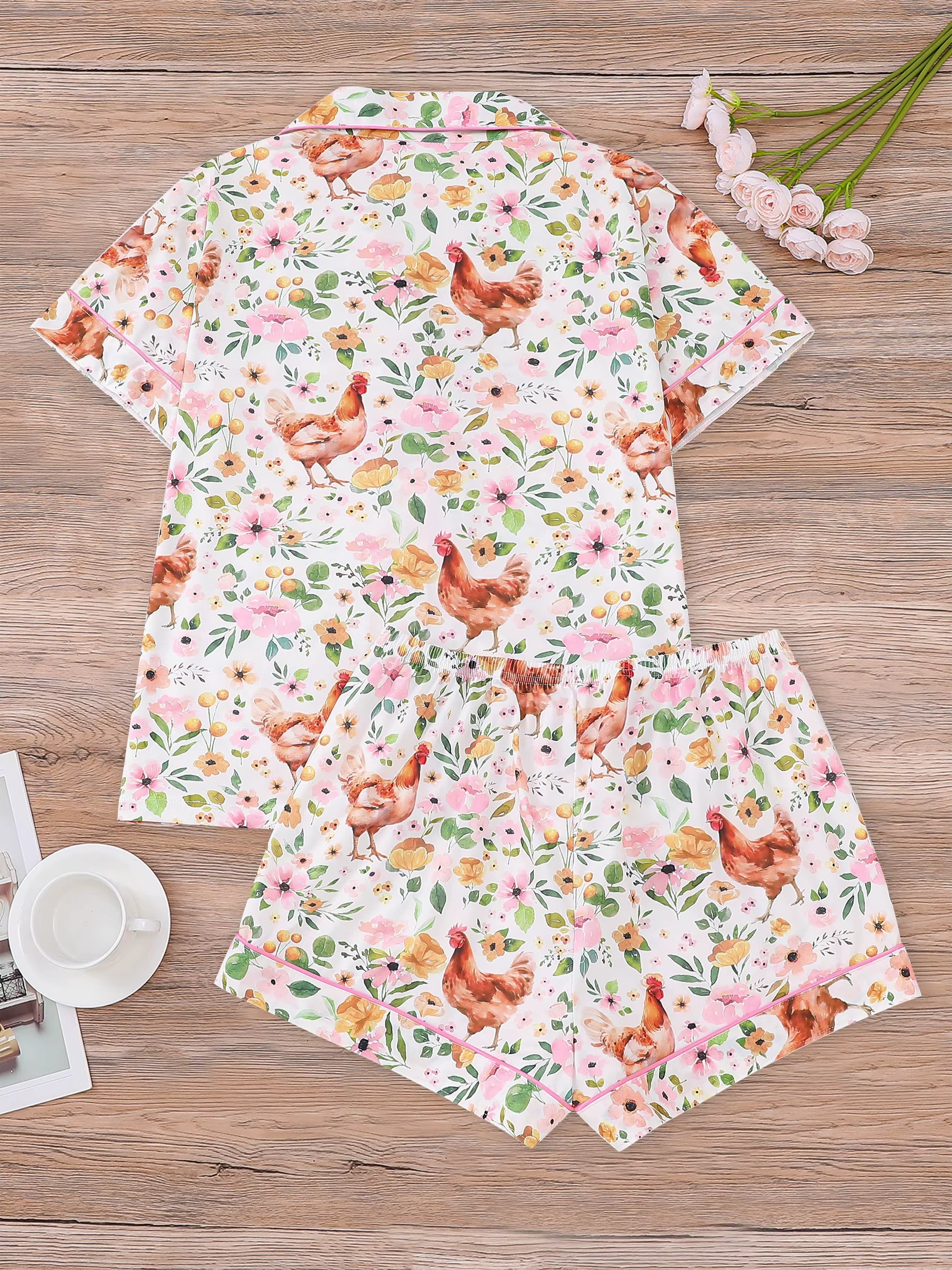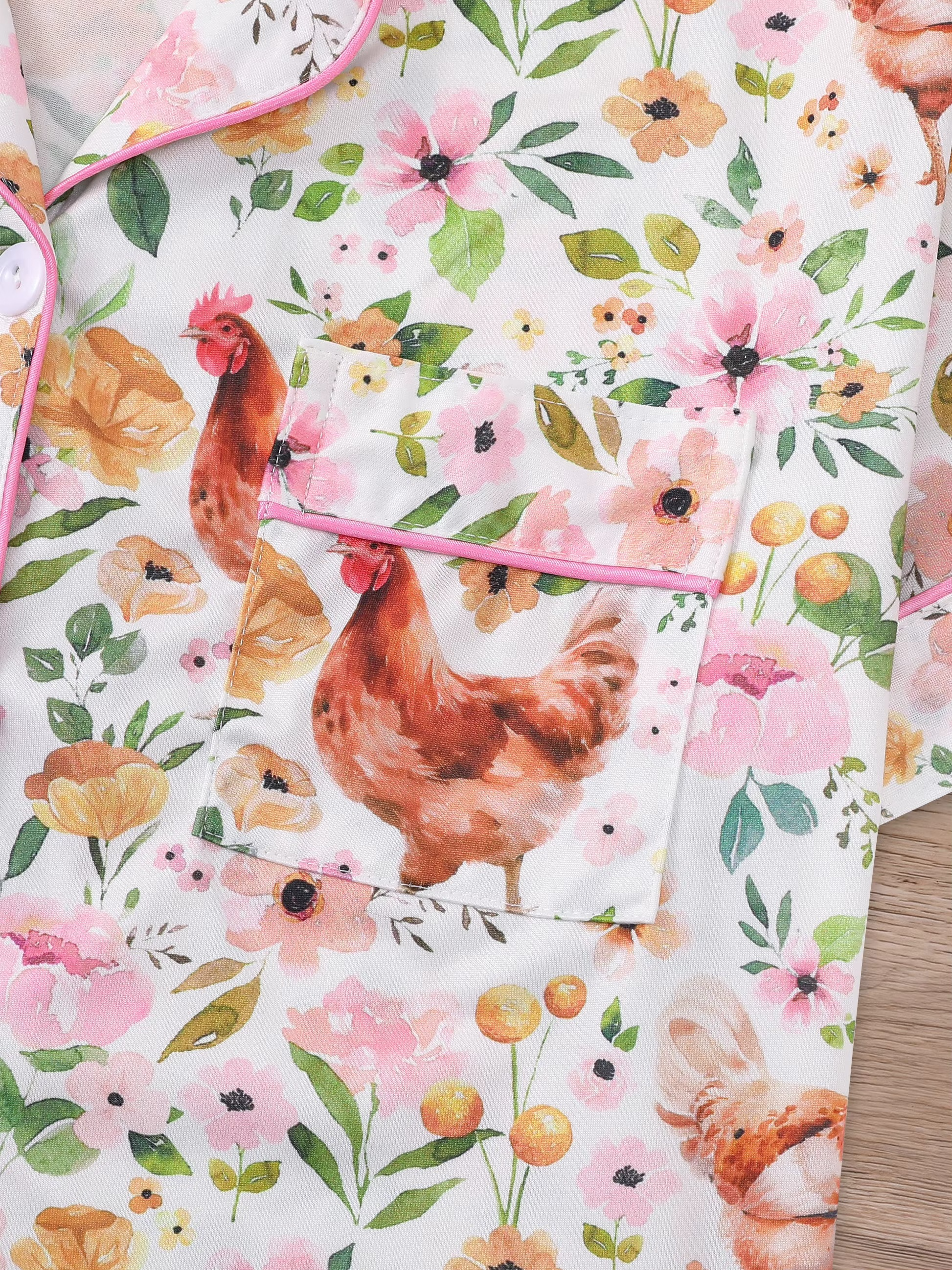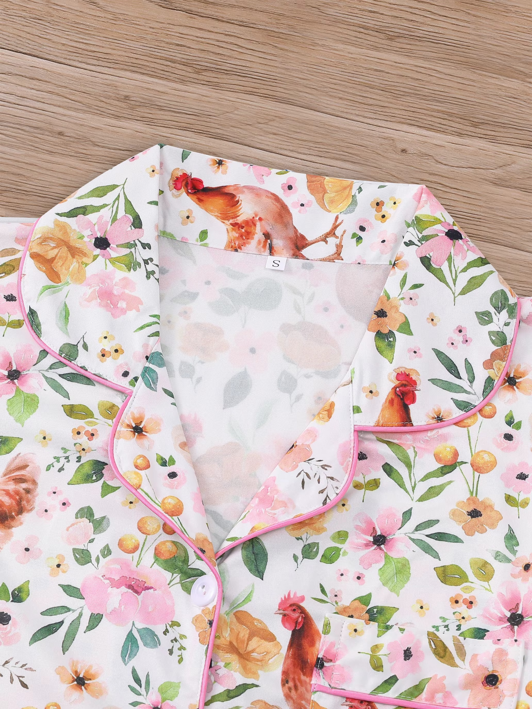 Com estampa floral delicada e galinhas aquareladas, ele traz aquele ar campestre fofo e feminino. Ideal para noites leves, dias de descanso em casa ou até para presentear alguém especial 💕✨